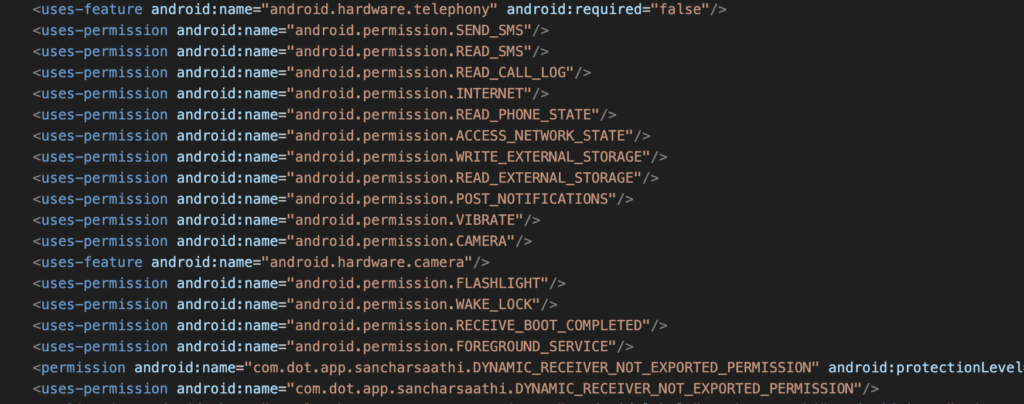 To move beyond assumptions, an independent technical review of the Sanchar Saathi APK was conducted, inspecting:
